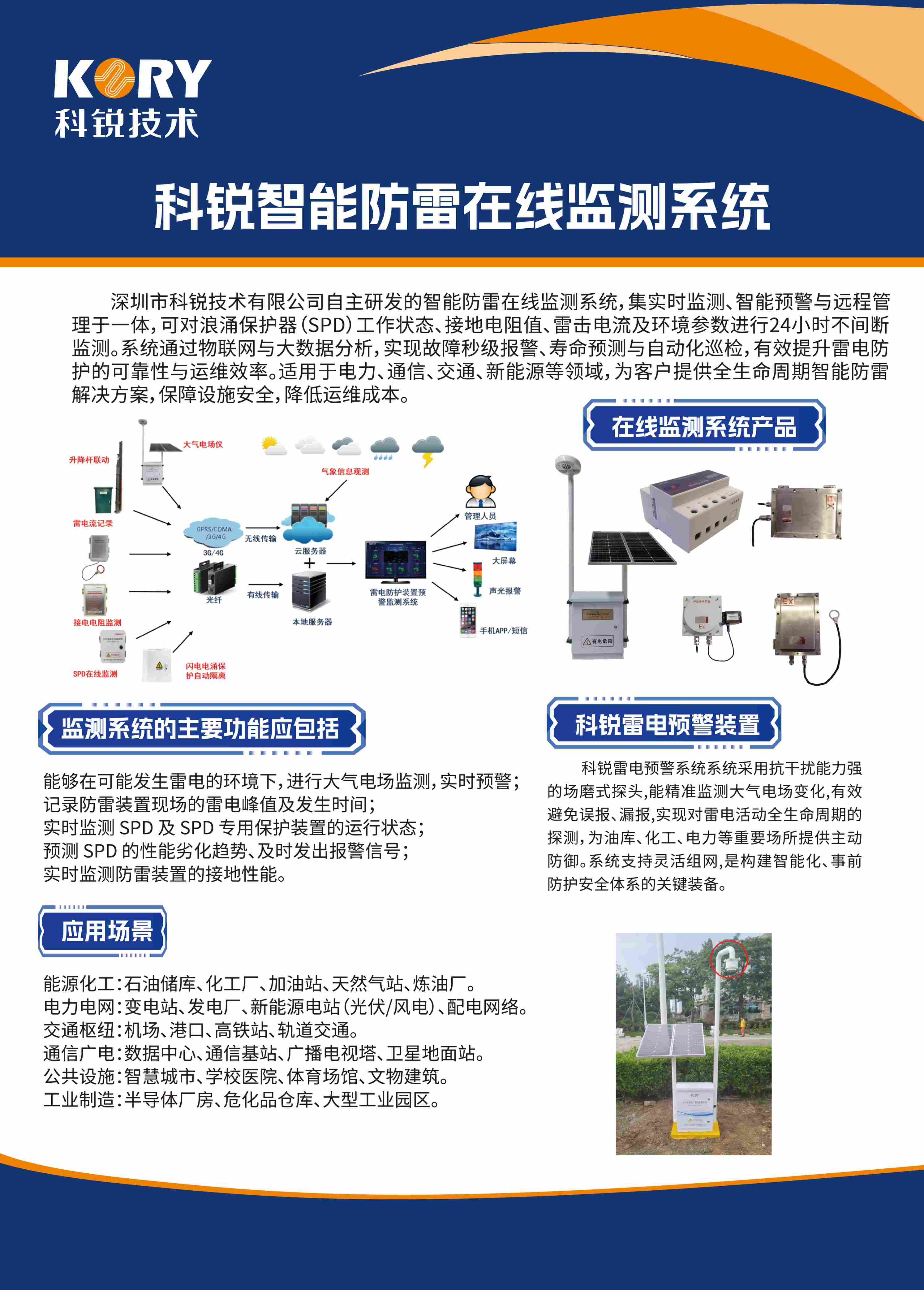 智慧安全解决方案:深圳科锐技术智能雷电防护在线监测系统主要功能首先是监测雷电,预防减灾。创新的使用和借鉴云物联、传感器、智能算法技术、大数据、移动互联最先进IT技...